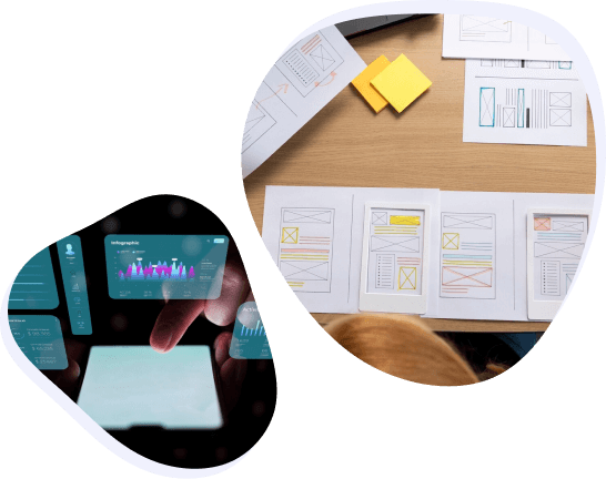Once wireframes are finalized, we craft high-fidelity prototypes using tools like Figma, Adobe XD, and Sketch, ensuring alignment with the client's brand. Then, we transition to development, utilizing frameworks like React and AngularJS for responsive, interactive UI components optimized for various devices.